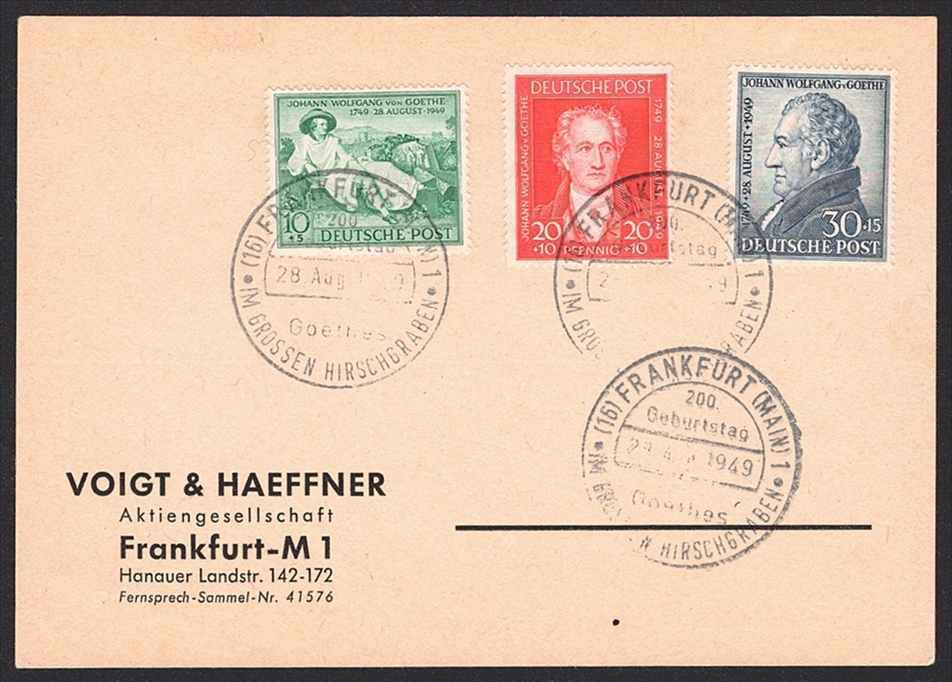 Deutschland, Alliierte Gebiete, 1949, Göthe, Nr.108-110, Sonderstempel