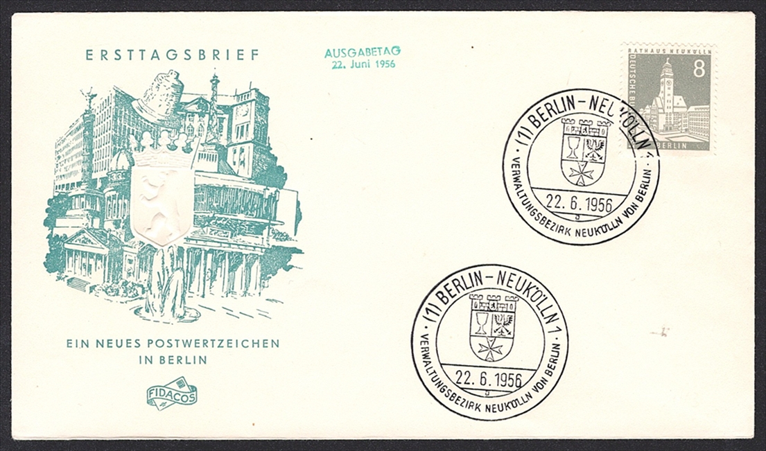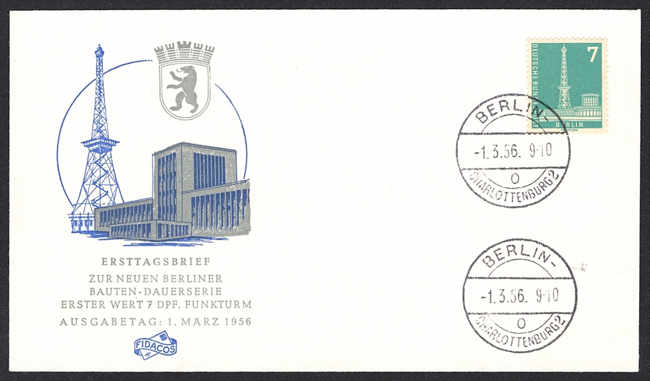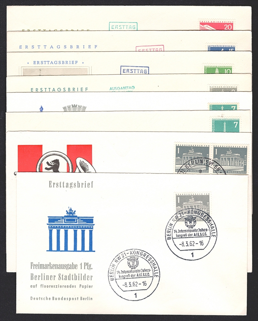 Deutschland, Berlin 1956/62 Nr. 140 bis 146 „Berliner Stadtbilder“ auf 8 Briefen – FDC