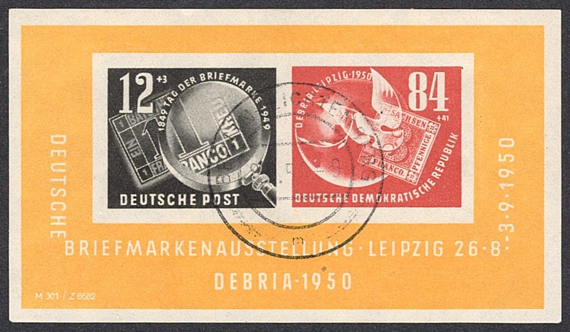 Deutschland, DDR, 1950, Briefmarkenausstellung, Bl.7, gestempelt BERLIN-LICHTENBERG