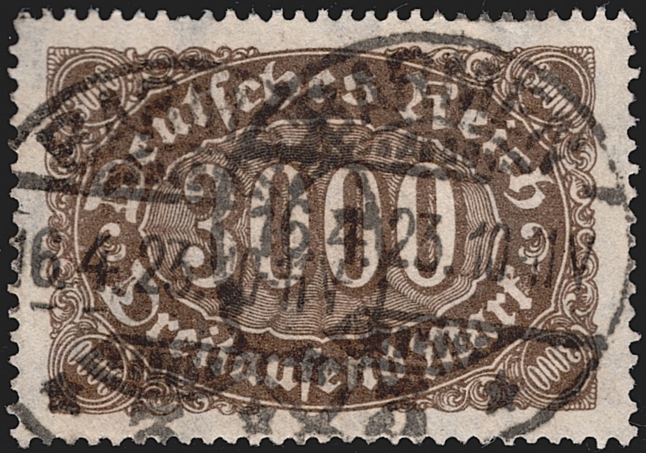 Shop » Deutschland, Deutsches Reich, Freimarken, Nr.254d, 3000 Mark, schwarzbraun, gestempelt BARMEN, signiert