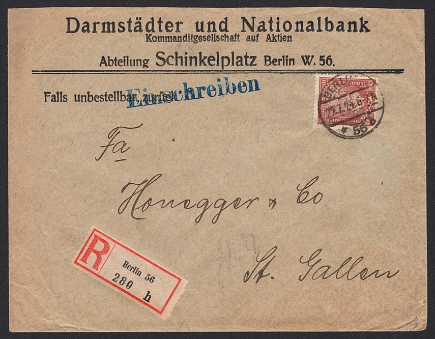Deutschland, Deutsches Reich, Freimarken, Nr.362, auf R-Brief in die Schweiz, mit Firmenlochung, BERLIN
