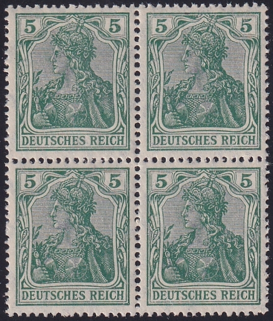 Deutschland, Deutsches Reich, Nr.85 IIa, 5 Pfg., Kriegsdruck, im Viererblock