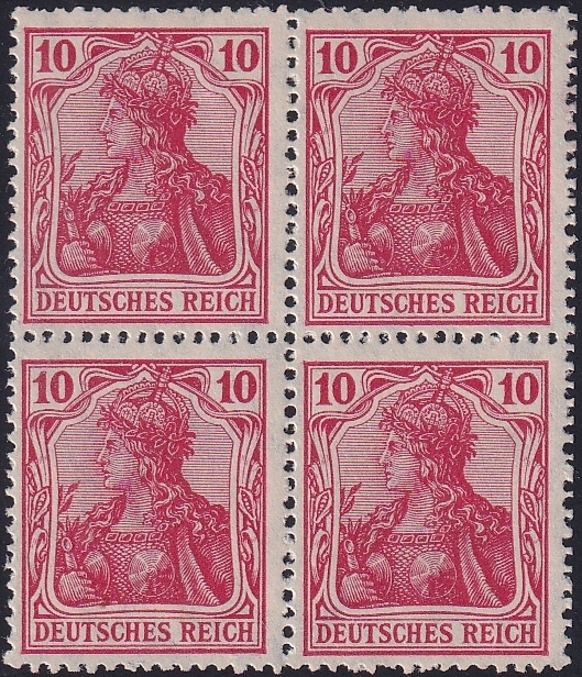 Deutschland, Deutsches Reich, Nr.86 IIc, 10 Pfg., Kriegsdruck, im Viererblock, 2x postfrisch