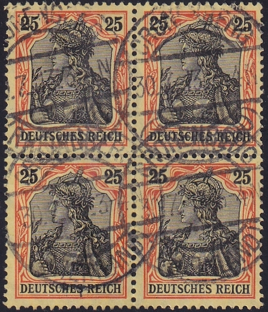 Deutschland, Deutsches Reich, Nr.88 IIb, 25 Pfg., Kriegsdruck, im Viererblock, sauber gestempelt