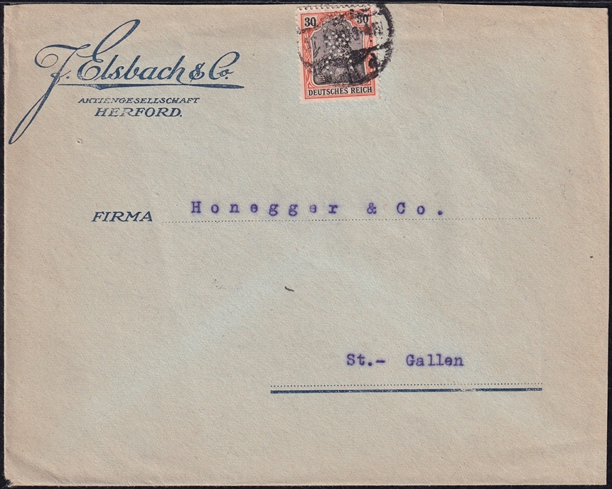 Deutschland, Deutsches Reich, Nr.89 I, Auslandsbrief nach St.Gallen, Rollenmarke mit „Firmenlochung“