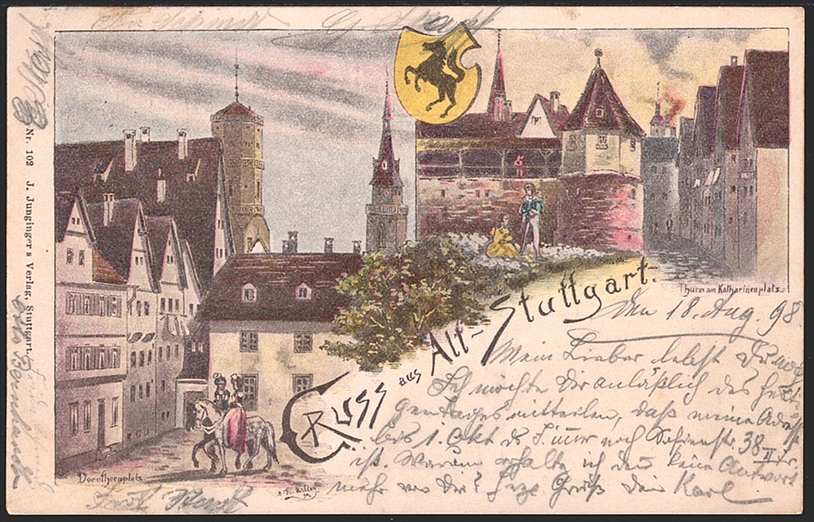 Deutschland, Lithographien, Gruss aus ALT-STUTTGART, 2 Bilder, 1898