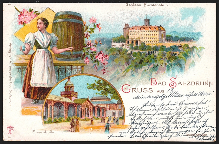 Deutschland, Lithographien, Gruss aus BAD SALZBRUNN, 3 Bilder, 1899