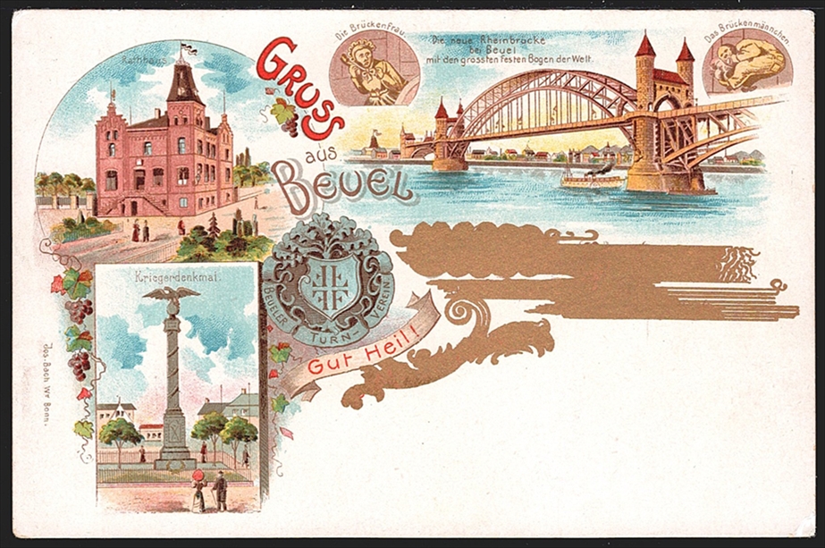 Deutschland, Lithographien, Gruss aus BEUEL, 3 Bilder, ca.1900, nicht gelaufen
