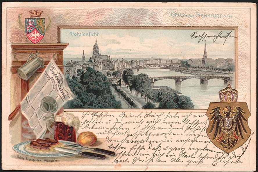 Deutschland, Lithographien, Gruss aus FRANKFURT, 1 Bild, 1903, mit Prägedruck