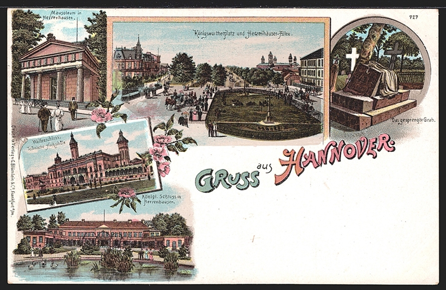 Deutschland, Lithographien, Gruss aus HANNOVER, 5 Bilder, 1900, nicht gelaufen