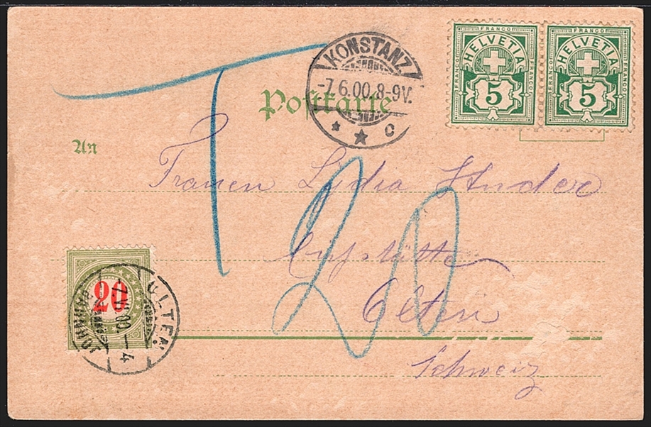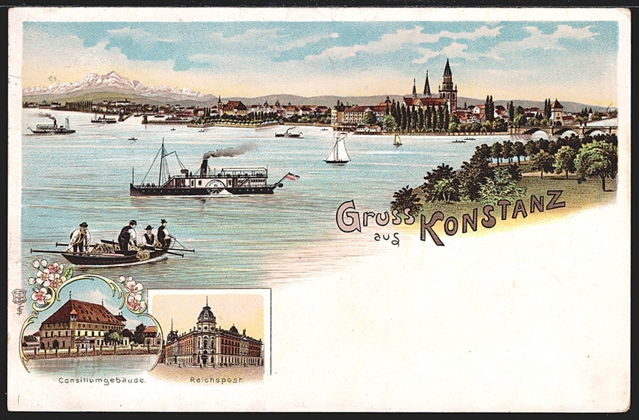 Deutschland, Lithographien, Gruss aus KONSTANZ, 3 Bilder, 1900, mit Nachporto Schweiz