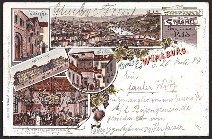 Deutschland, Lithographien, Gruss aus WÜRZBURG, 5 Bilder, 1898