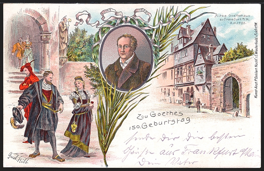 Deutschland, Lithographien, Zu GÖTHES 150.Geburtstag FRANKFURT, 3 Bilder, 1899