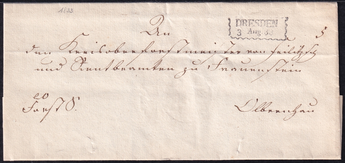 Deutschland, Vorphilatelie, Faltumschlag, sauber gestempelt DRESDEN 3 Aug 33