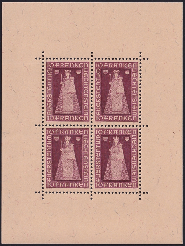 Liechtenstein 1941 Mi. Nr. 197 „Madonna von Dux“ Kleinbogen ohne Randinschrift – Blatt 1 A – gezähnt postfrisch **