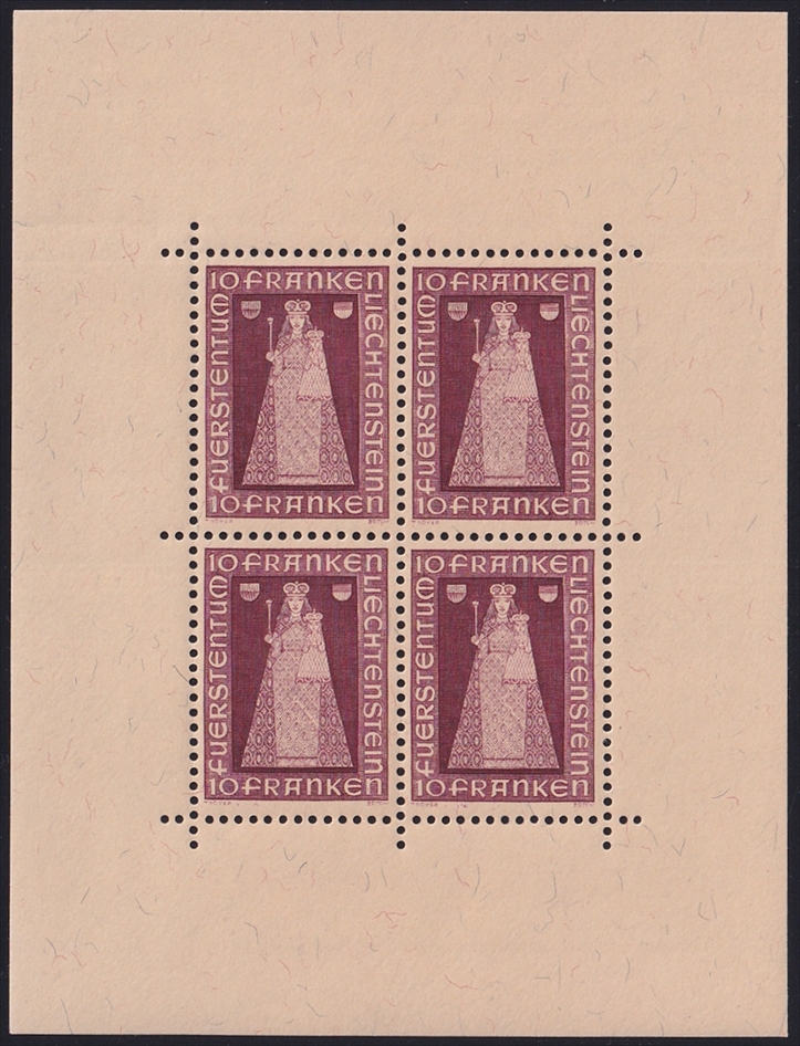 Liechtenstein 1941 Mi. Nr. 197 „Madonna von Dux“ Kleinbogen ohne Randinschrift – Blatt 3 C – gezähnt postfrisch **