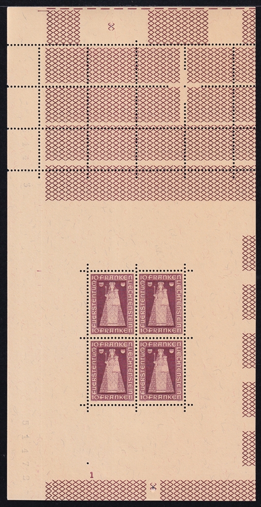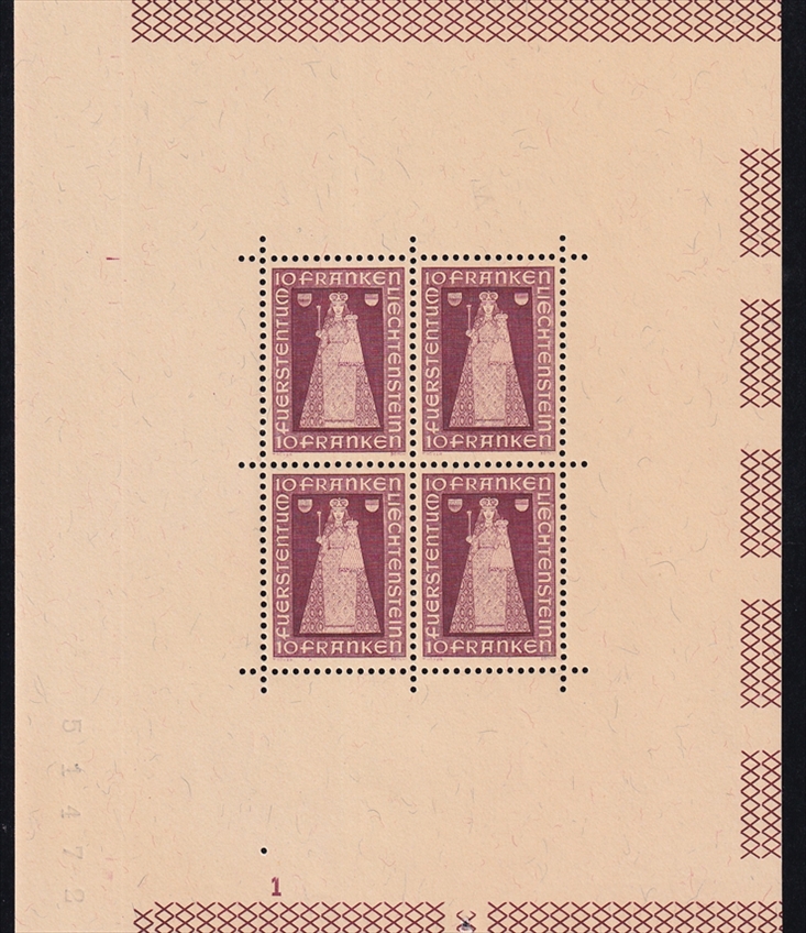 Liechtenstein 1941 Mi. Nr. 197 „Madonna von Dux“ Kleinbogen ohne Randinschrift – Bogenteil – gezähnt postfrisch **
