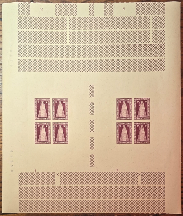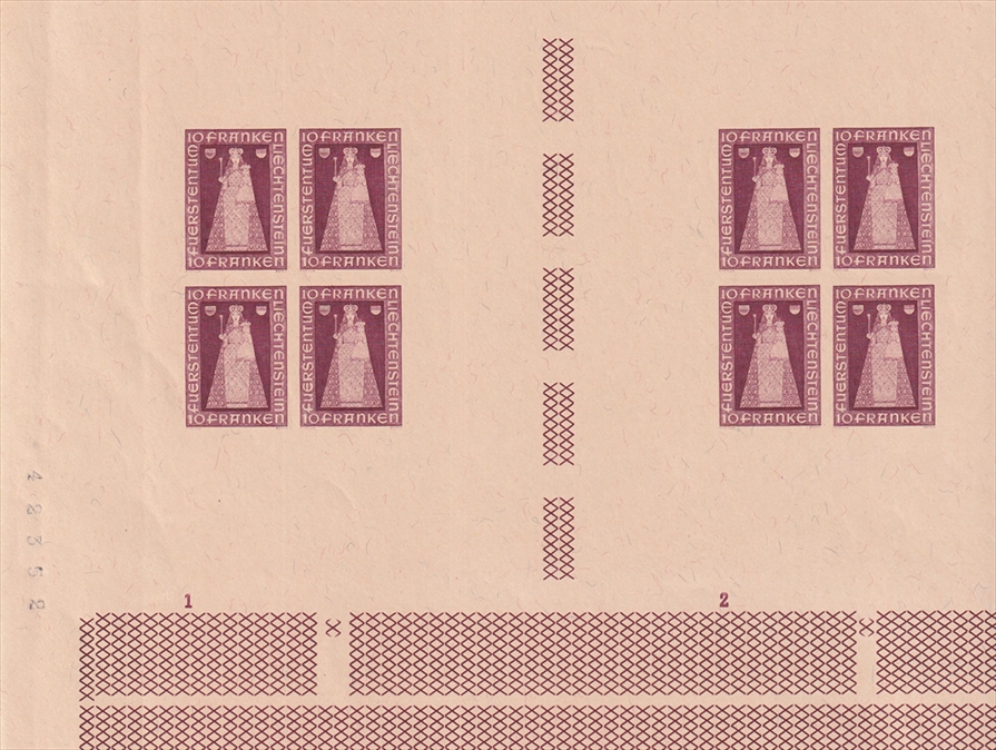 Liechtenstein 1941 Mi. Nr. 197 U „Madonna von Dux“ Doppelbogen Nr. 1 und 2 ohne Randinschrift – ungezähnt postfrisch **