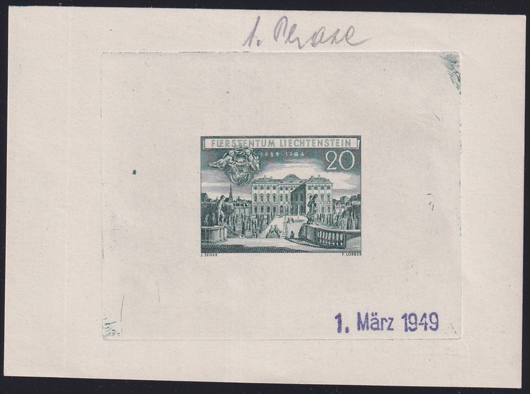 Liechtenstein 1949 Mi. Nr. 281 ungezähnte 1. Phase als gummierter Einzelabzug in Farbe
