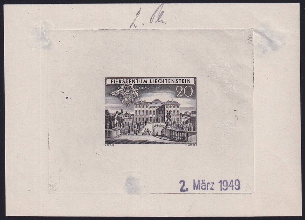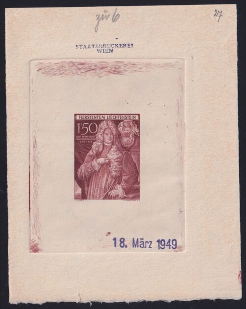 Liechtenstein 1949 Mi. Nr. 281 ungezähnte 2. Phase als gummierter Einzelabzug in Schwarz