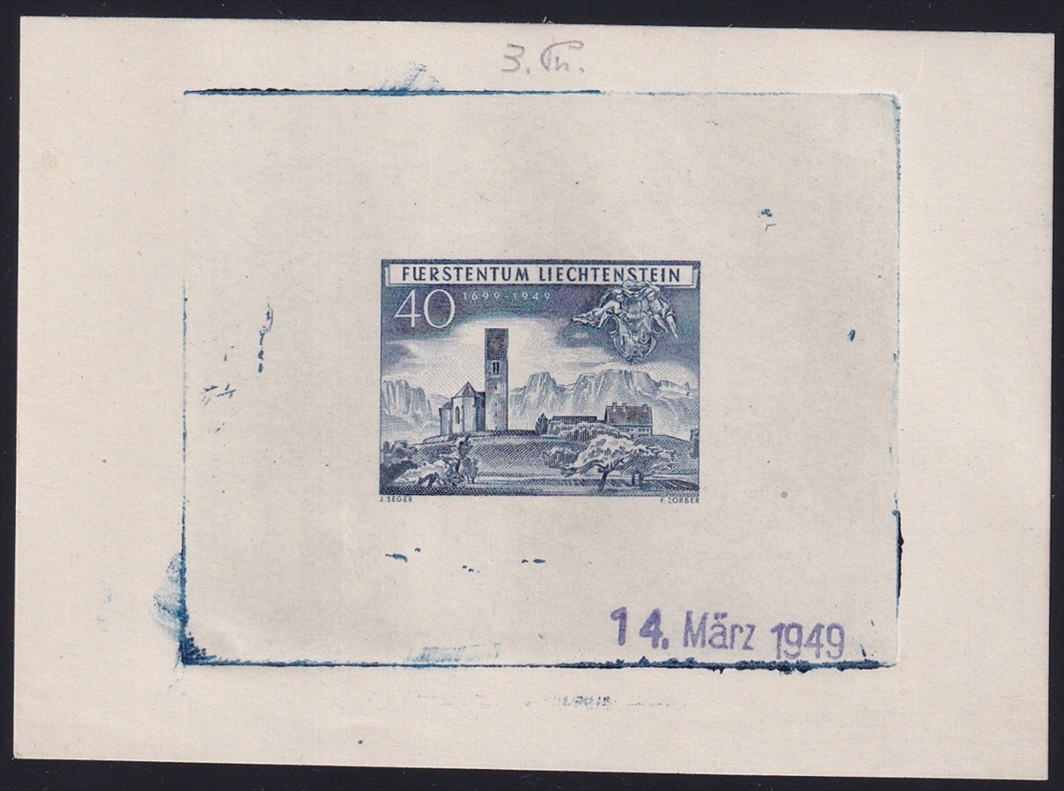 Liechtenstein 1949 Mi. Nr. 282 ungezähnte 3. Phase als gummierter Einzelabzug in Farbe