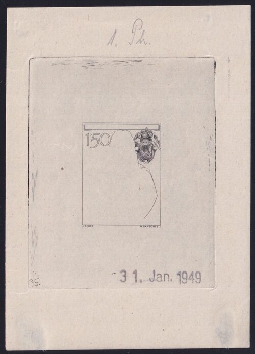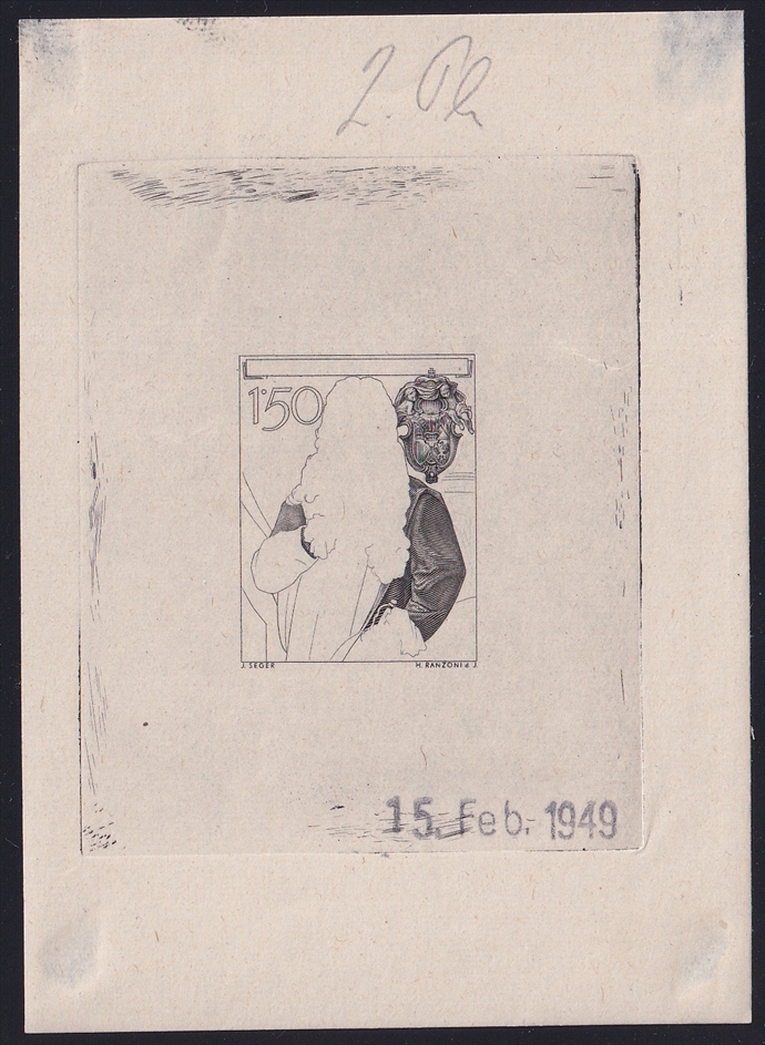 Liechtenstein 1949 Mi. Nr. 283 ungezähnte 2. Phase als Einzelabzug in Schwarz