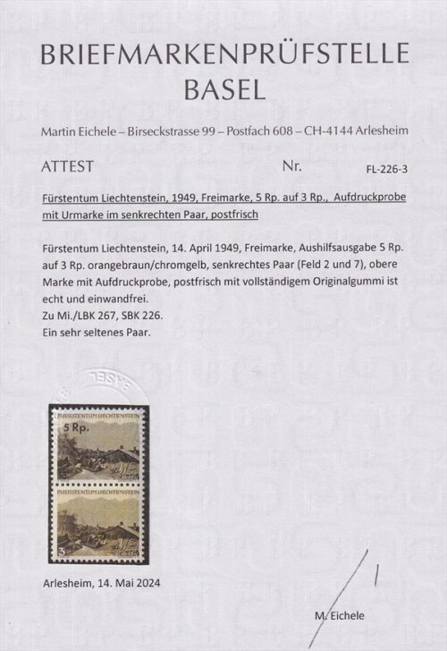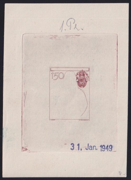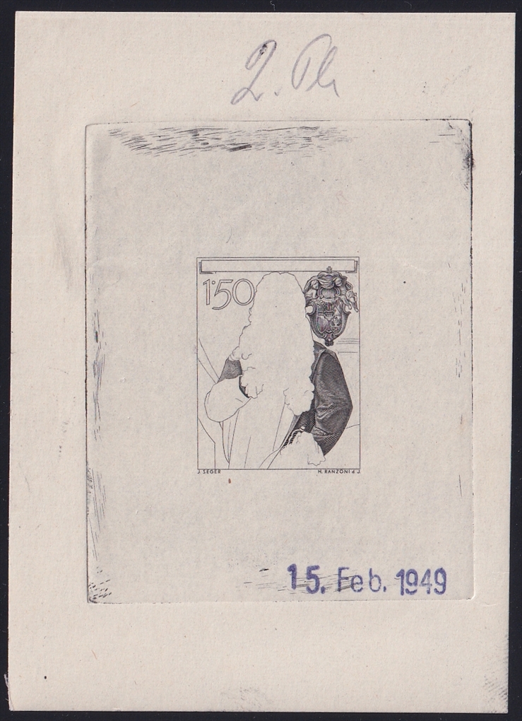 Liechtenstein 1949 Mi. Nr. 283 ungezähnte 2. Phase als Einzelabzug in Schwarz