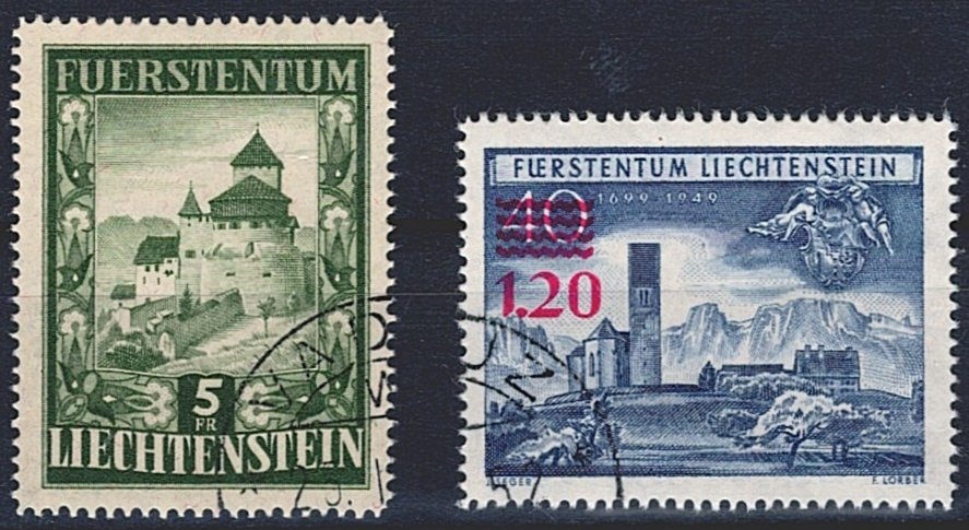 Liechtenstein 1952 Nr. 309 und 310 gestempelt Ersttag