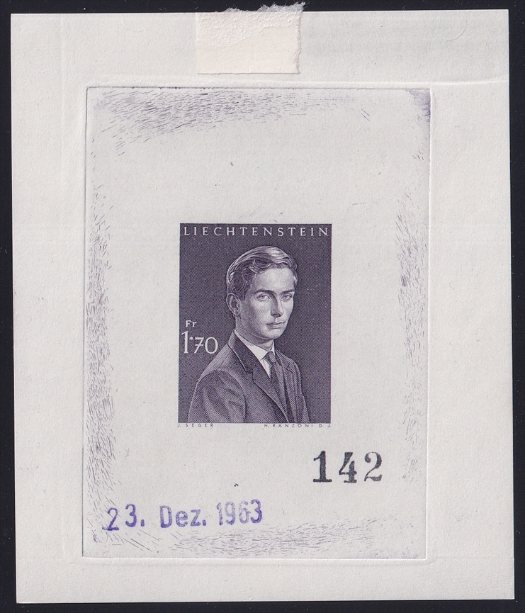Liechtenstein 1963 Mi. Nr. 439 ungezähnter Einzelabzug – nahe verausgabter Farbe