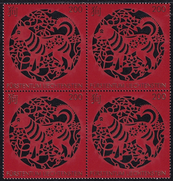 Liechtenstein 2017 Nr. 1883 „Chinesisches Neujahr – Jahr des Hundes“ 4er Block CHF 2.00er postfrisch ** – frankaturgültig