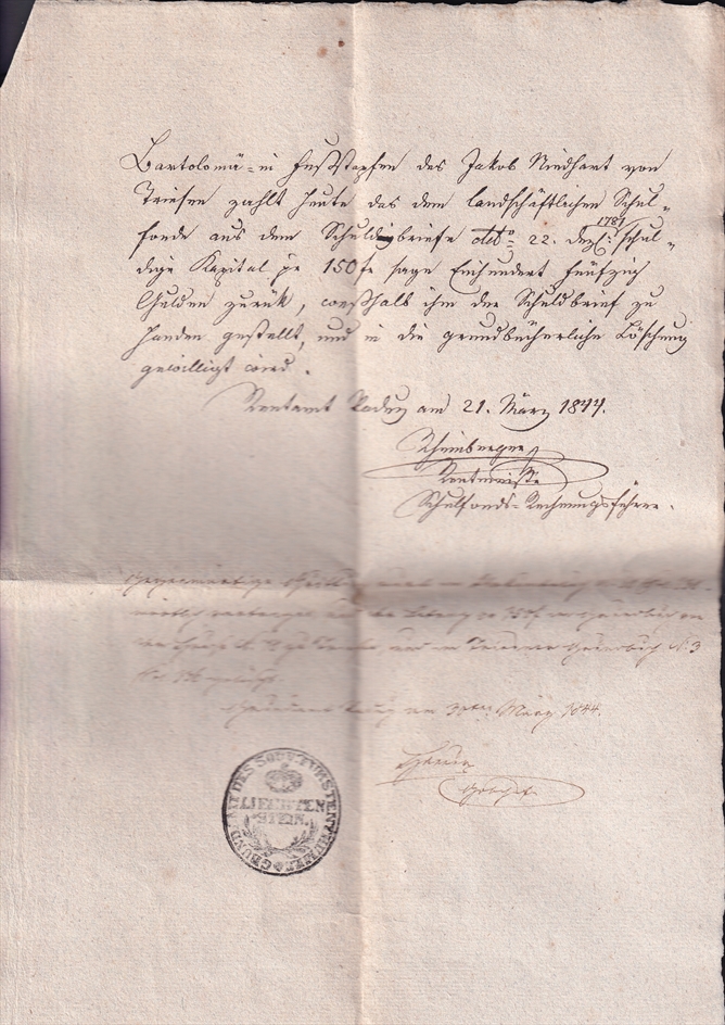 Liechtenstein, Faltbrief 1844, mit Stempel „GRUNDAMT DES SOUV.FÜRSTENTHUMES“