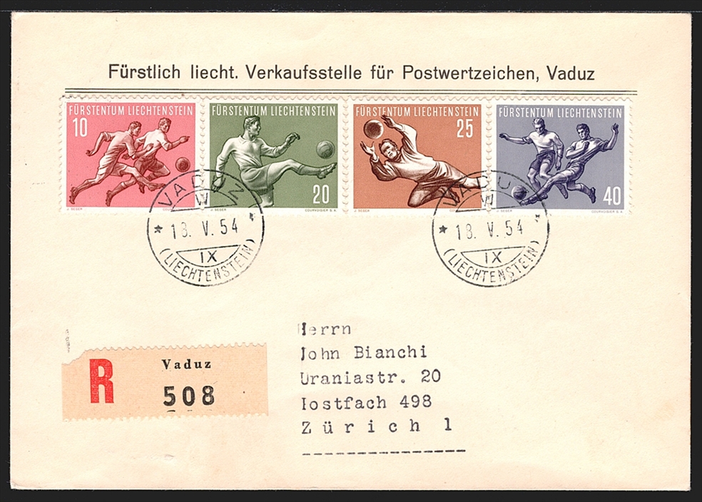 Liechtenstein, FDC, Freimarken, Sport, Nr.266-269, komplette Serie, gestempelt VADUZ, R-FDC nach Zürich