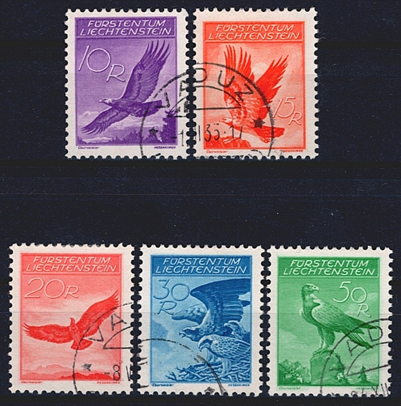 Liechtenstein, Flugpost, Adlermotive, komplette Serie, Eckstempel