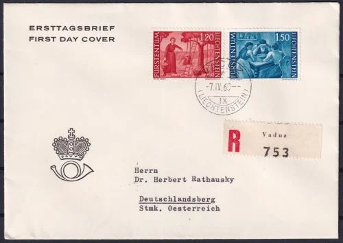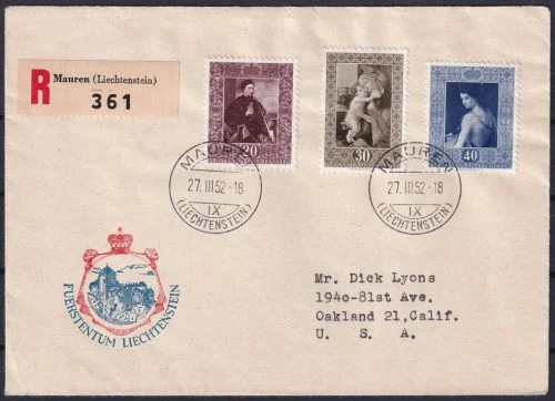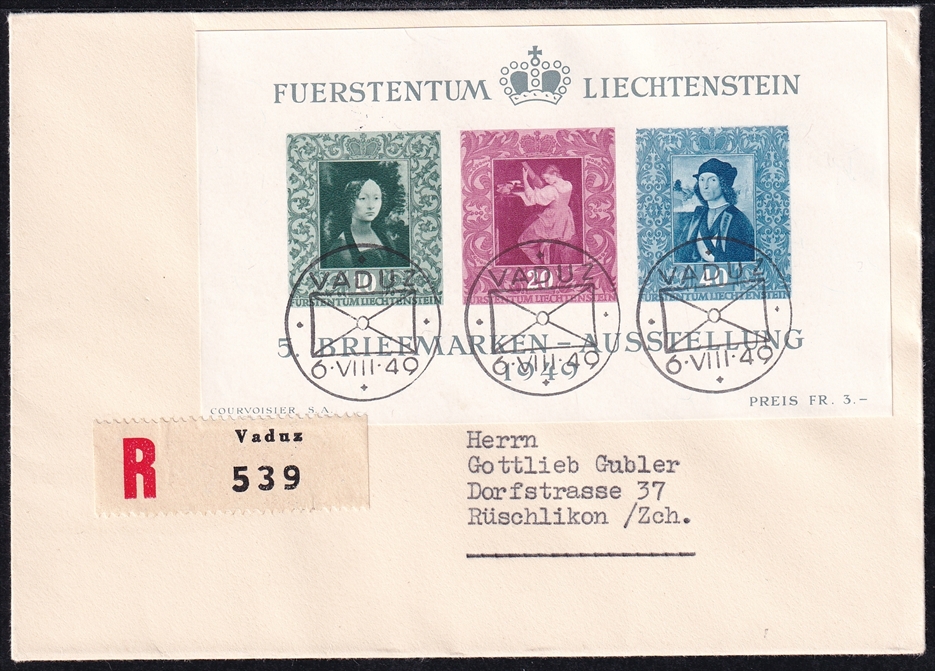 Liechtenstein, Freimarken, FDC, Nr.Bl.5 R-Brief nach Rüschlikon