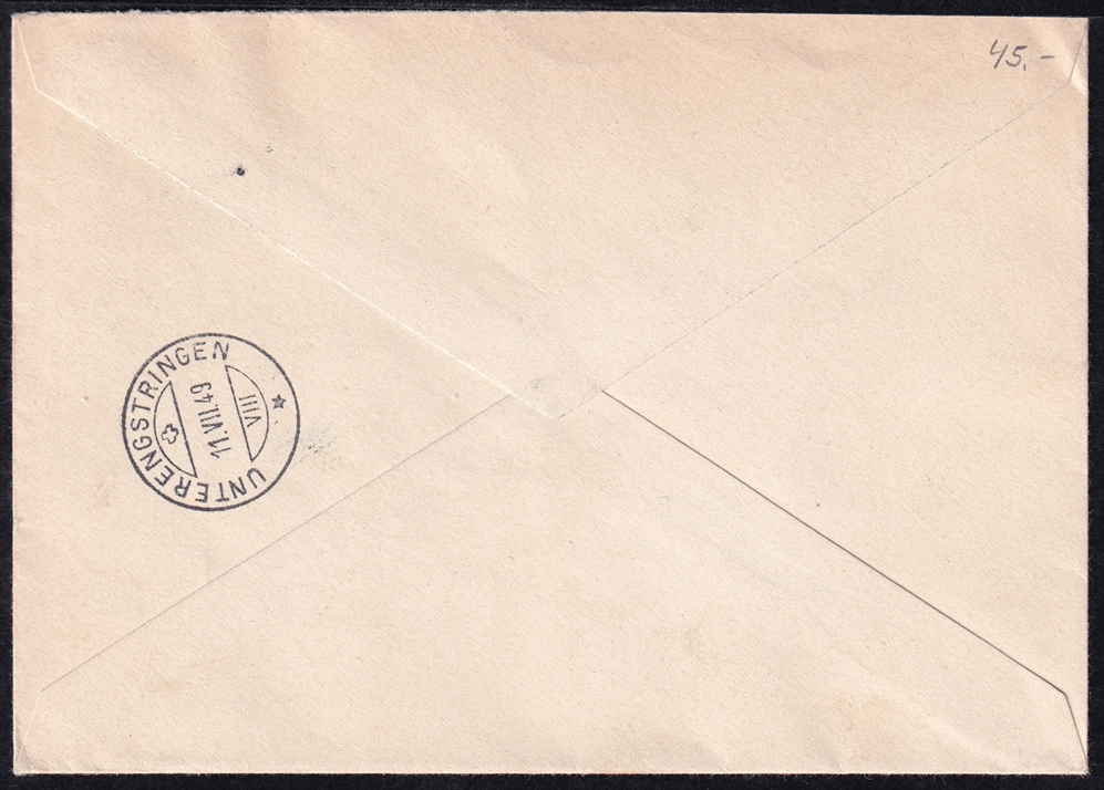 Liechtenstein, Freimarken, Nr.277 IV, Abart „Strich in Grönland“, im Viererblock auf R-Expressbrief, sauber gestempelt SCHAAN