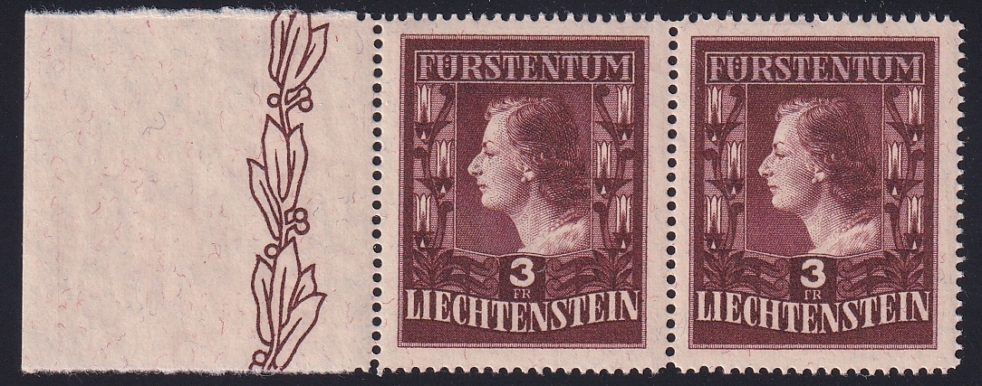 Liechtenstein, Freimarken, Nr.305B Fürstin Gina, Zä 14,75, waagrechtes Paar mit Bogenrand