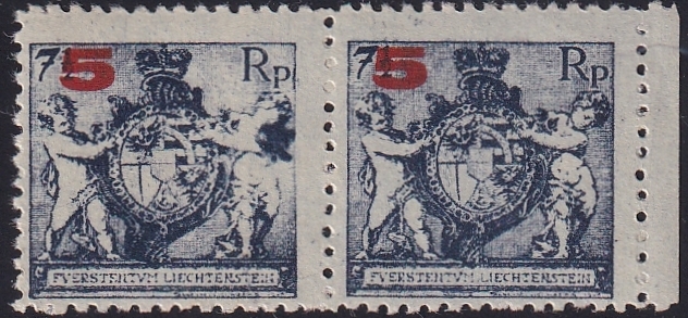 Liechtenstein, Freimarken, Nr.61B II, „grosser Farbleck unter Kopf“, waagrechtes Paar