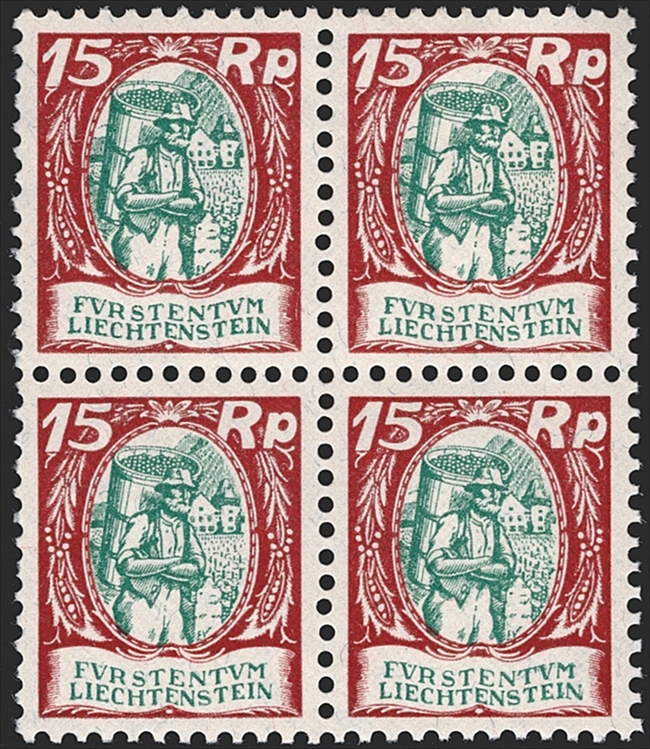 Liechtenstein, Freimarken, Nr.68, 15Rp.Winzer, Viererblock