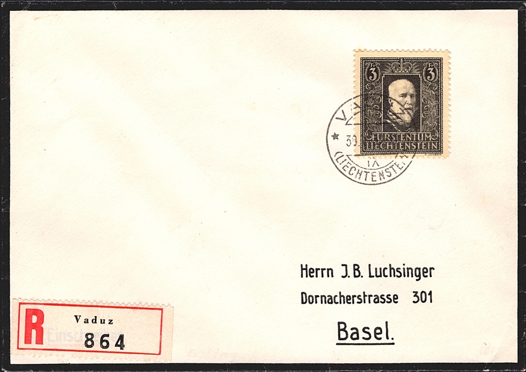 Liechtenstein, Freimarken, Tod von Fürst Franz I, Nr.142, R-Trauerbrief, gestempelt VADUZ