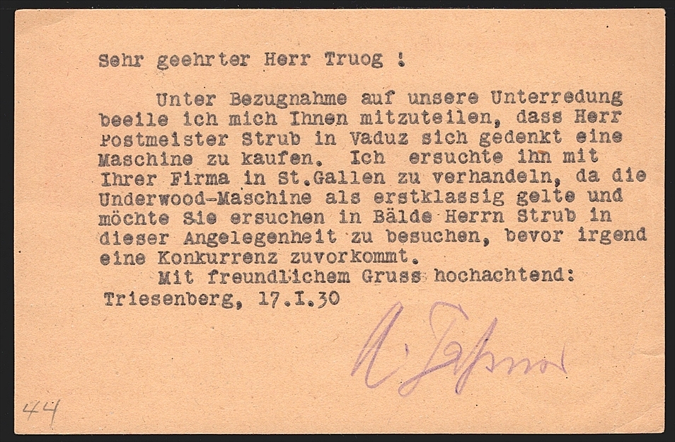 Liechtenstein Ganzsachen 1929 „POSTKARTE“ Mi. Nr. P5 gestempelt TRIESENBERG