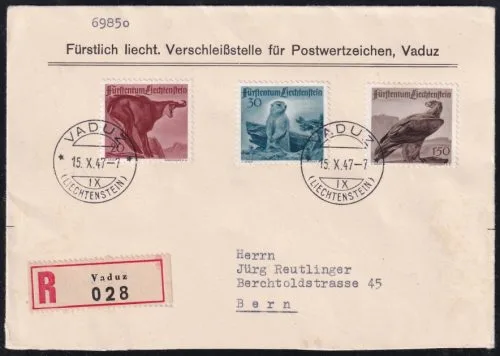 Liechtenstein, Jagdserie, offiz. R-Express-Umschlag