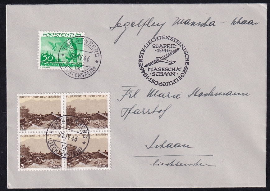 Liechtenstein, Luftpost, Freimarken Nr.177/224 sauber auf Segelluftpost, 96, sauber gestempelt TRIESENBERG