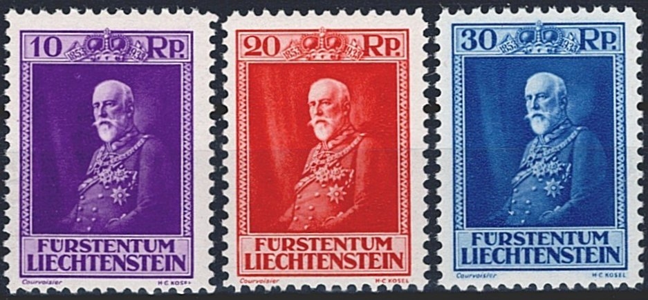 Liechtenstein, Nr.101-103, Fürst Franz l, komplette Serie