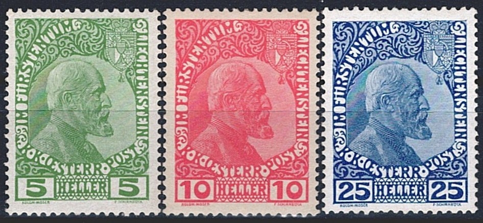 Liechtenstein, Nr.1x-3x, Fürst Johann ll, Kreidepapier