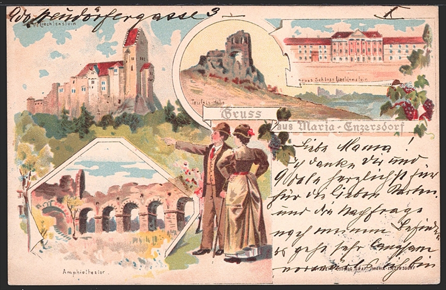 Lithographien, Niederösterreich, Gruss aus MARIA-ENZERSDORF, 4 Bilder, 1902