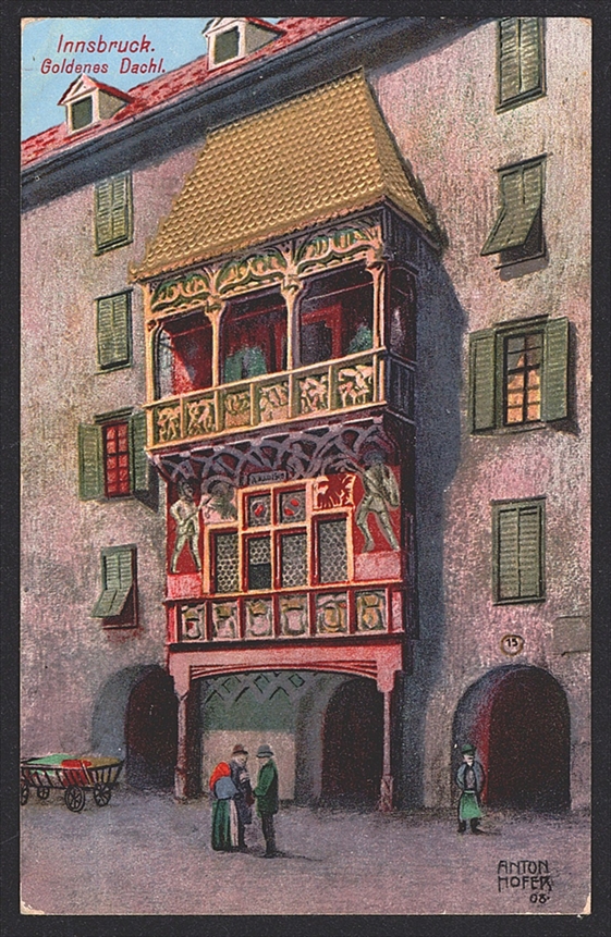 Lithographien Österreich, INNSBRUCK, Goldenes Dachl, Farblitho, 1912