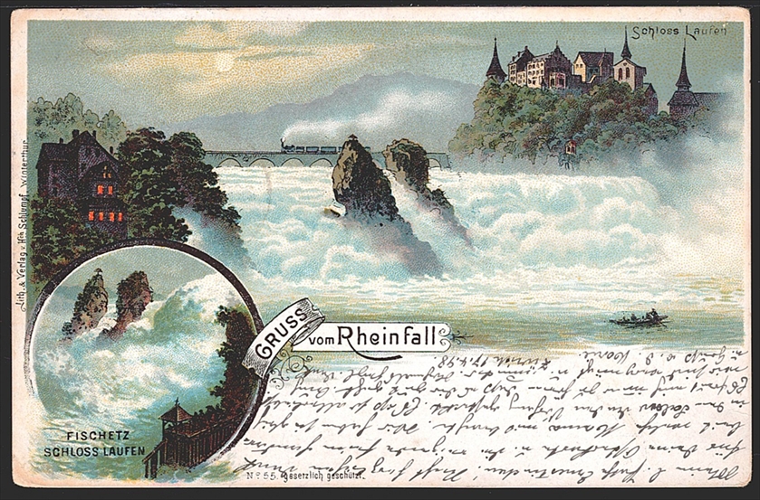 Lithographien, Schweiz, Gruss vom RHEINFALL, 2 Bilder, Farblitho, 1898