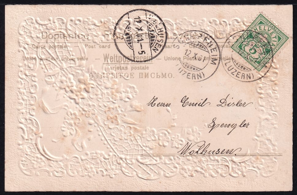 Lithokarten 1901 – „Blumenstrauss“ – gestempelt SCHÜPFHEIM