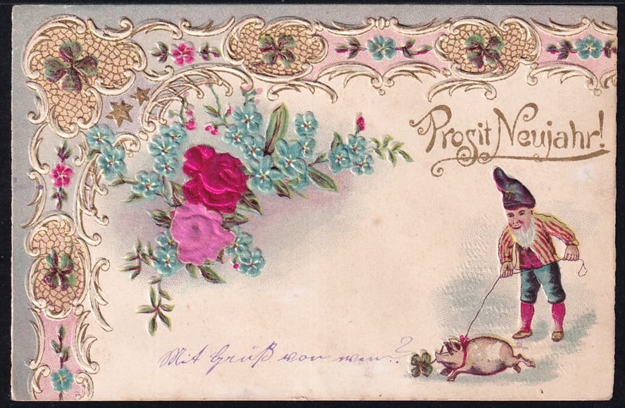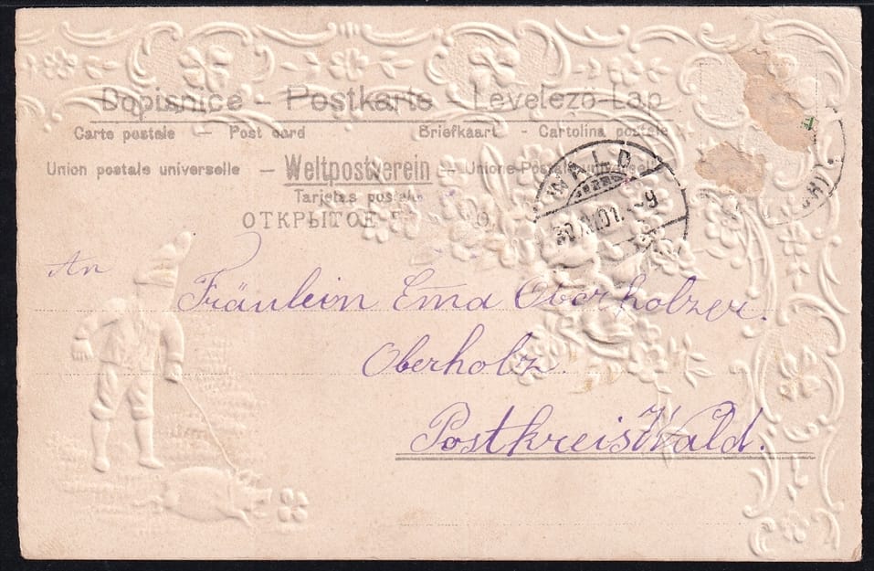 Lithokarten 1901 – „Prosit Neujahr“ – gestempelt WALD