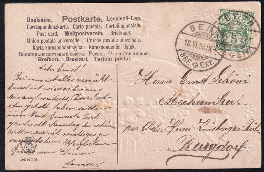 Lithokarten 1906 – „Vergiss mich nicht“ – gestempelt BERN